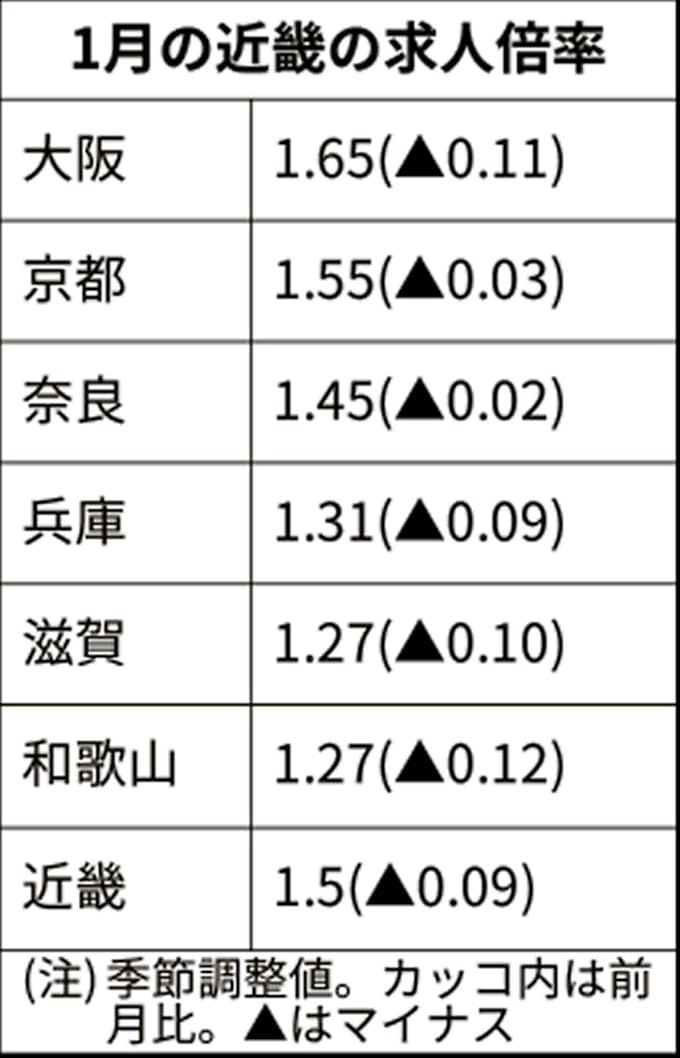 1月の近畿求人倍率 大幅低下1 50倍 7年ぶり判断下げ 日本経済新聞