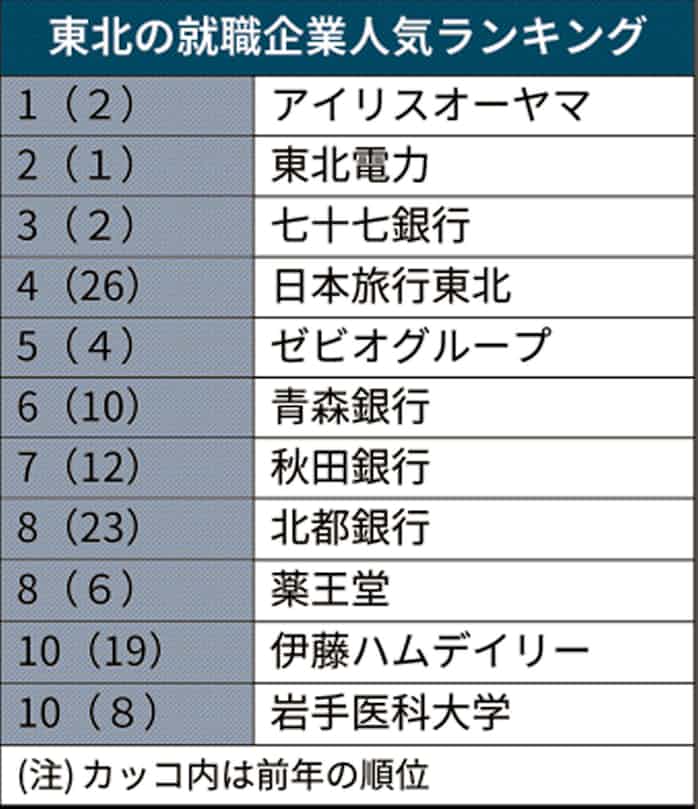 東北の就職人気ランキング アイリスが初の首位 日本経済新聞