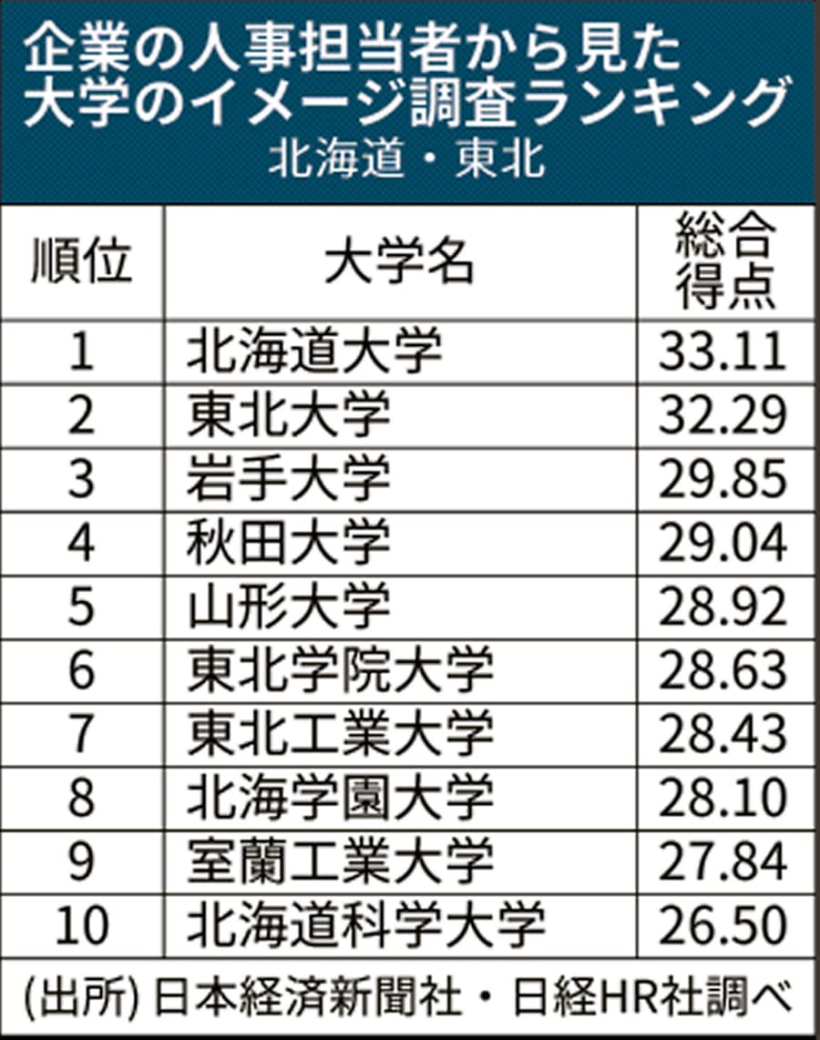 人事がみる大学イメージ 北海道 東北も国立大上位 日本経済新聞