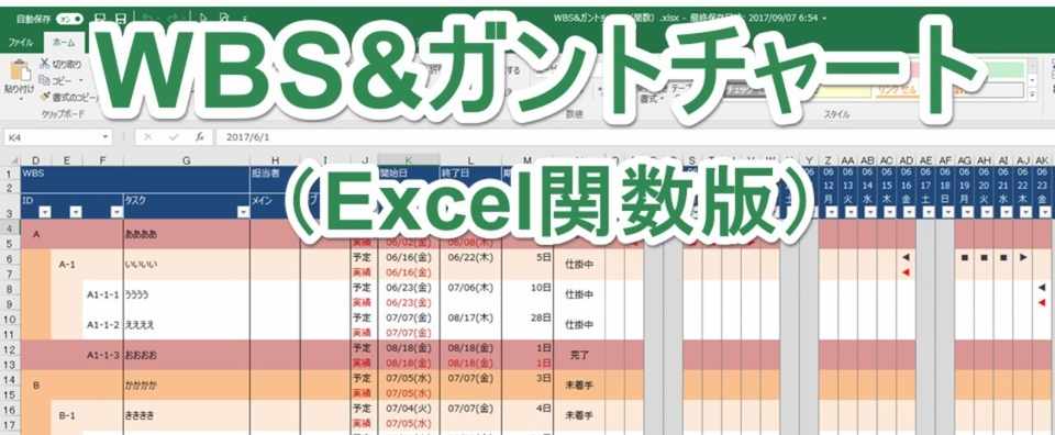 エクセル本著者による有料テンプレート Wbs ガントチャート Excel関数版 Excelを制する者は人生を制す No Excel No Life