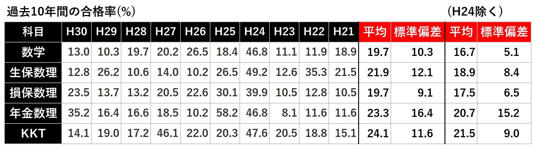 各資格試験の合格率などの統計 アクチュアリー ゼミナール