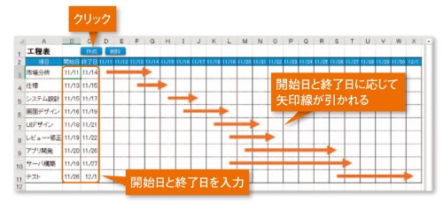 7番 右 スケジュール表の矢印線を自動で引く 日経クロステック Active