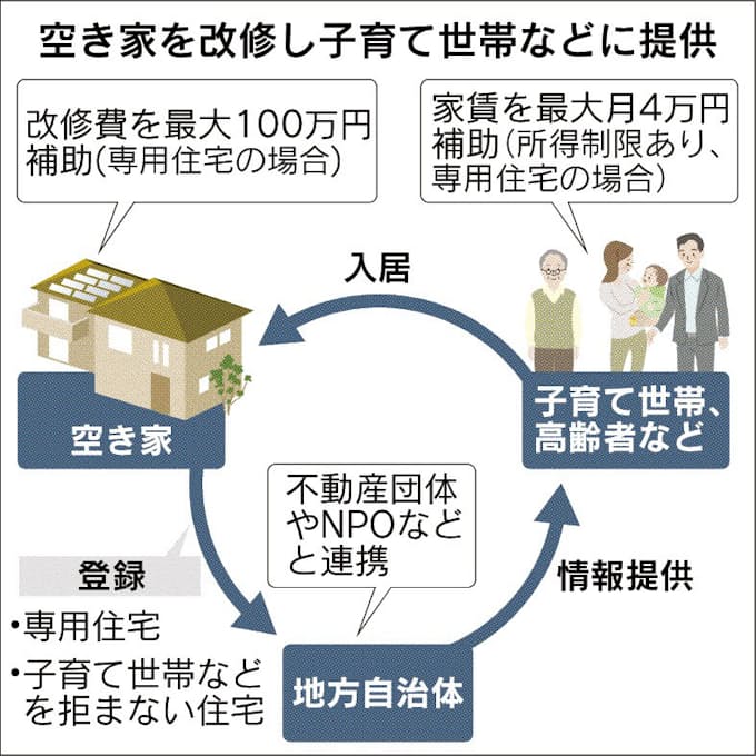 空き家入居に月4万円補助 子育て世帯や高齢者 日本経済新聞