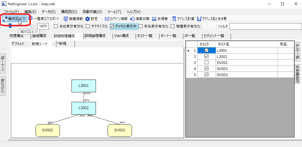 詳細物理構成図出力 ネットワーク設計自動化